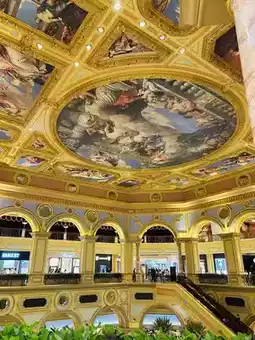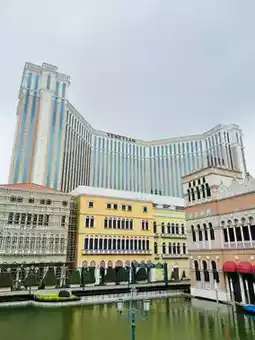 The hotel features canals where you can experience a gondola ride! There are also famous egg tart shops and a food court, making it a great spot for dining. 🍽️