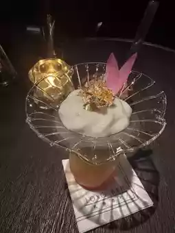 The Macau Sling is inspired by the lotus, Macau's city flower, blending its fragrance with a subtle sweetness. ft. Pineapple juice, pomegranate caviar, and lotus marshmallow foam—it looks beautiful 🥰, but I'm not a huge fan...