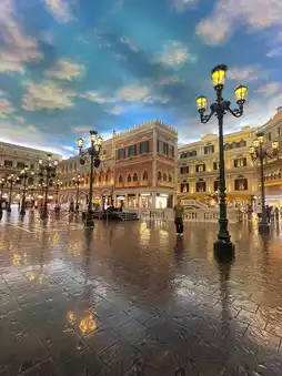 #falladventures #localguides #familytrip #historicallandmarks Crossing the threshold of The Venetian Macao is to witness a masterfully executed act of environmental sleight-of-hand, where the very concepts of ‘inside’ and ‘outside’ are architecturally dissolved. While its exterior is a colossal, sun-baked tribute to the Italian Renaissance, standing in stark, dramatic contrast to the subtropical Macau climate, the interior consummates a complete escape from that reality. The moment one steps inside, the humid Asian air vanishes, replaced by a perpetually climate-controlled breeze, and the natural sky is seamlessly usurped by one of the world’s most famous artificial ones. This magnificent ceiling, a masterstroke of design, glows with a perpetual, soft-blue midday, its painted clouds so convincing they challenge perception. Beneath this manufactured heaven, the interior landscape unfolds with breathtaking audacity: marble piazzas, cobbled walkways, and the shimmering, turquoise waters of the indoor canals, where gondoliers navigate not by the sun or moon, but by the glow of faux-gas streetlamps. The scale is intentionally disorienting, creating a self-contained city where St. Mark's Campanile rises in the distance, not over a lagoon, but above a bustling concourse of luxury shops and echoing casinos. The air hums with a curated soundscape of opera melodies and the gentle lapping of water, a stark aural contrast to the urban din left behind at the entrance. This internal world is a perfect, frozen moment of Venice, an exquisite and hermetic bubble designed to make you forget the very building you are in, let alone the vibrant, real-world city of Macau that pulses just beyond its walls.