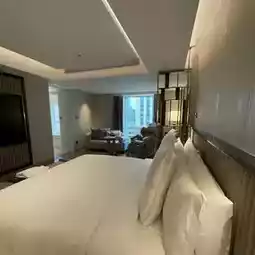 This is an all-suite apartment-style hotel. Today we stayed in a two-bedroom suite of over 200 square meters. It is located next to the Four Seasons Hotel and the Four Seasons Shops is downstairs, making shopping and dining very convenient. There are bathtubs in all rooms, massage chairs in the master bedroom, and a living room, dining room, kitchen, and tea room.