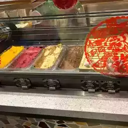 There is an oversized seafood market with fresh seafood ingredients that can be cooked to order