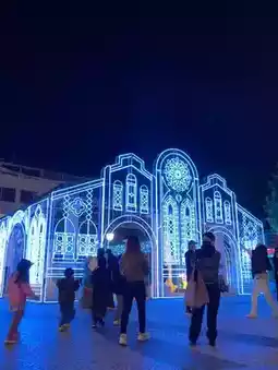 The light installation at the end of the street is also shining in the colors of the Macao River, which makes the atmosphere more festive!