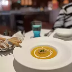 The soup is creamy pumpkin soup with dumplings🥟 It's a bit like foreigners making dumplings