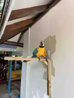 Around the resort's water sports center, five adorable parrots welcome guests. Their vibrant colors and playful nature make them a must for photos! However, one of them tends to climb onto people or act a bit feisty, so be cautious when getting too close. Even from a distance, they are cute and lovable! 🥰