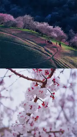🌸🌸 From the end of March to mid-April, this Central Asian hinterland is transformed into a secret sea of pink and white flowers, a romantic date that is worth going to in spring!