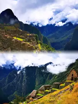 Located in the Cusco region of Peru, Machu Picchu is a pre-Columbian Inca Empire city ruin and one of the Seven Wonders of the World. Perched at an altitude of 2,430 meters on a mountain ridge, it overlooks the Urubamba River Valley, earning its nickname as the 'Sky City' and is also known as the 'Lost City of the Incas.'