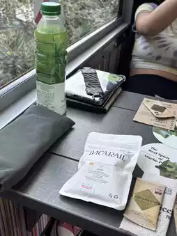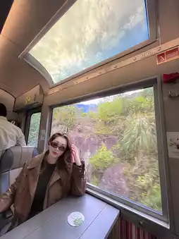 During the journey, there will be coffee and coca tea service. There are cookies to eat. There is a place to charge your battery at the seat. There is air conditioning in the train and there is music and performances on the train during the journey.