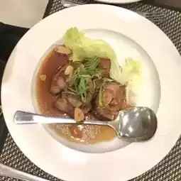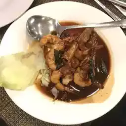 The baby pork ribs were the best. The chicken tasted similar to the steamed chicken we usually eat, and the mala shrimp tasted like shrimp in mala soup, so it was just okay. But the baby pork ribs had such a perfect balance of salty and sweet flavors that I even ordered rice to share. :>