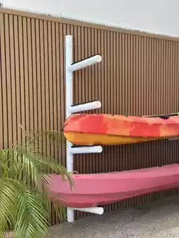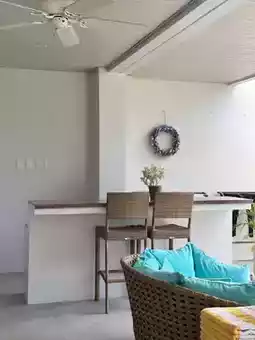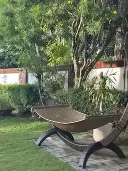 But that's not all! Step outside the living room, and you'll find a spacious garden with a private pool and jacuzzi just for your group. There's also a bar table and a separate 4-person table. In total, there are five tables!๐คฃ The garden is equipped with rattan chairs, sunbeds, a hammock under the shade of a tree, and even two kayaks that you can take out to the sea anytime. There's also a barbecue area and an outdoor shower for rinsing off after a swim in the sea. It's truly the best of the best!๐๐ป