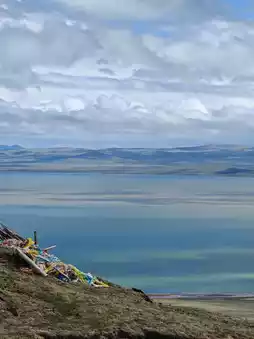 To see Zhaling Lake, you need to cross over three or four more hills on the other side, but you can only see a corner of it. How much further you need to go to see the whole picture, I do not know