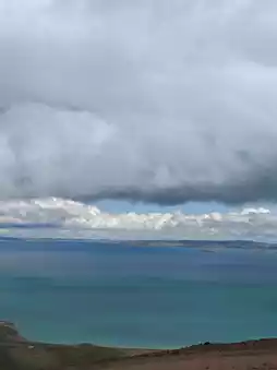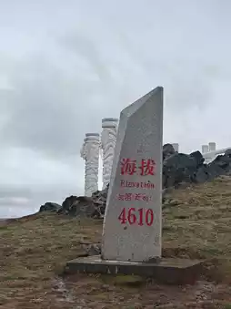 The dirt road up the mountain is quite winding, with nine turns and eighteen bends, as specifically shown in Figure 7 navigation image. Fortunately, the slope of the mountain is gentle, so it's not too difficult if you're careful. Standing next to this rough, resolute, and majestic monument, you can feel the thrill and happiness of touching the source of our mother river. Overlooking the outrageously beautiful Eling Lake, the weather after the rain clears up, under the contrast of the blue sky and white clouds, the lake reflects a dazzling array of colors due to different depths and other reasons, under the sunlight, making it endlessly fascinating and longing