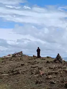 The Niutou Monument is about 90 kilometers away from Maqin County, with the last forty kilometers being unpaved roads. The total driving time is roughly two and a half hours. Although bumpy, it's all worth it when you stand on the summit of Mount Cuori Gaze, leaning against the Niutou Monument and overlooking Eling Lake