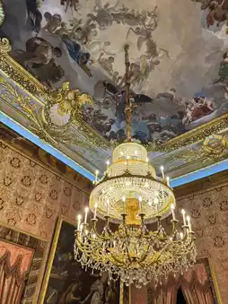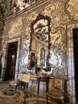 The Baroque style is characterized by gilded plaster, marble reliefs and complex murals, such as the ceiling painting of the Imperial Hall with Venetian crystal chandeliers, showing dynamic splendor; Neoclassicism is reflected in the symmetrical design and simple lines of the Hall of Mirrors. Italian art dominates the decorative details, with extensive use of Carrara marble and mythological theme murals🖼️