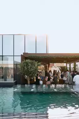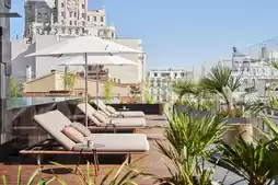 🍹Accessible directly from inside the hotel, the pool bar unveils panoramic views of Madrid in a peaceful ambiance. The city's rooftops glisten under the sun, accompanied by soothing background music and a signature cocktail freshly mixed by the bartender, paired with aromatic Iberian ham... Madrid's unique relaxation begins quietly in this very moment.
