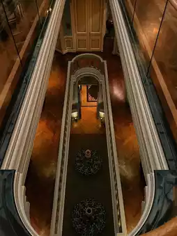 Upon entering the lobby, you're immediately immersed in a perfect blend of historic ambiance and luxurious touches. Soaring ceilings, exquisite crystal chandeliers, ornate carved walls, and the outdoor garden - every detail reflects its noble heritage!