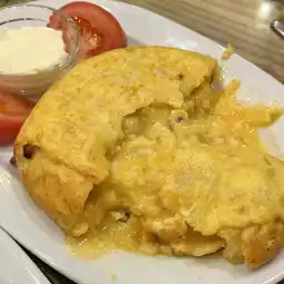 A trip to Spain isn't complete without trying tortilla. Fatigas' Spanish omelette is golden on the outside, thick, and hearty, with a perfect blend of eggs and potatoes. Some versions include onions for a sweet and savory balance. Crispy on the outside, tender on the inside, and delicious whether served hot or cold, this is a true classic!