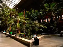 The Atocha Tropical Botanical Garden features an impressive 4,000 square meter greenhouse housing 260 species of tropical and subtropical plants. This large green space was created to celebrate the arrival of the high-speed train (AVE) at Atocha station. The garden is located on the ground floor and is accessible from the Emperor Carlos V Plaza, Mendes Álvaro Street, and Princess Isabel Avenue.