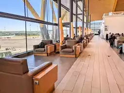 Business travelers will find convenience in the numerous power outlets available near almost every seat. The large windows provide a direct view of the tarmac, offering a fantastic perspective and a more pleasant atmosphere.