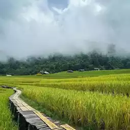 Rice plants are starting to change from green to yellow. Some fields are still green, while others are already yellow and ready for harvest. Anyone wanting to take photos, hurry! I expect harvest will begin in two weeks. The weather is beautiful, and there's always mist floating by.â°ïļð