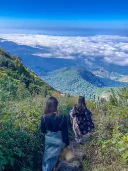 ⛰️ Doi Pha Hom Pok 🌟 Extreme score 8/10 Quite difficult and difficult to walk. The ground is steep. You should come and camp in the park first. 🏕️ The path is quite narrow and dangerous. And they let us walk very early, around 3am 💤🚶 There is a guide to walk⏰ They will wake us up at the tent at 3am. You heard me right because by the time we arrived, the sun was just rising.