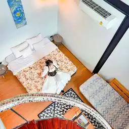 🏡 2 lofts: There are two houses, each suitable for two guests. These duplex-style houses have a half-story living area and bathroom on the ground floor. The upper level houses a king-size bed.