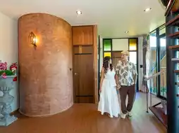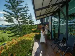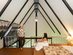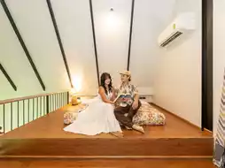 There are 10 houses in total, three types: O2, O2x, and Ozone. We stayed in O2, a two-story house with a living room, bathroom, and private balcony for relaxing and enjoying the natural scenery. The mezzanine is the bedroom area. The room is beautifully decorated with primarily wooden furniture and comes with a full range of amenities.