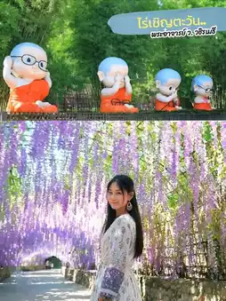 - It is a flower garden that grows winter flowers such as salvia, petunias, begonias, roses, trumpet flowers, various auspicious trees, including more than 70 types of climbing plants and a continuous sculpture made by Mr. Mee Sieim Yib In Soi in the middle of the garden.