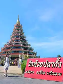 - Located on a hill, it is prominent from afar. Inside the temple, there is a white chapel with a long naga staircase leading to the top of the chapel. There is the largest Guanyin statue in Thailand and “Phop Chok Tham Chedi”, a 9-story pagoda with a pointed shape and a red roof with dragon statues stretching on both sides of the stairs. Anyone visiting Chiang Rai should not miss the beauty of this temple.