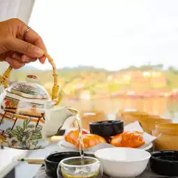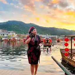 #Photo location, good weather✨This winter, invite #Chinese boat trip at Ban Rak Thai. The first time Nicky went there, she was so impressed that she couldn't move on. The boat trip got beautiful photos📸, good atmosphere, food, dim sum, pork leg, steamed buns, this is the place. Pang Pao Dim Sum, Ban Rak Thai