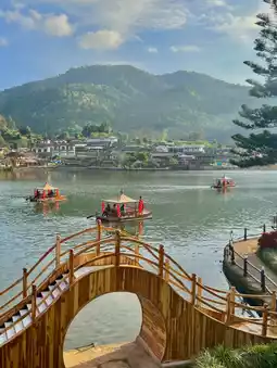 #Rainy season travel destinations Visit Ban Rak Thai, Mae Hong Son Province, a dream destination for many people. This is a Yunnan Chinese village by the lake, surrounded by mountains. The highlight here is the Chinese-style boat ride. The mist floating above the water in the morning is a very beautiful sight. The boat houses here are uniquely beautiful and take great photos. For anyone who wants to experience the atmosphere at Ban Rak Thai, we recommend staying here for one night. You will see the beauty that is worth the trip. ✨