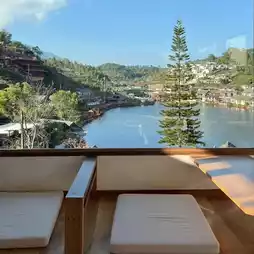With a terrace, mountain views, mud houses, and a lake, it's perfect for chilling out