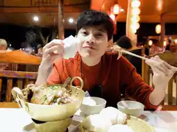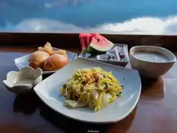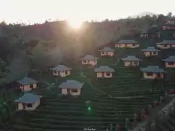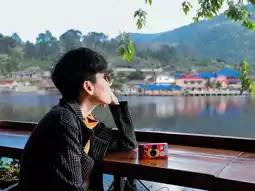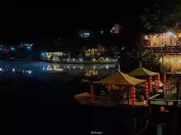 This is a Yunnan Chinese village in the middle of the mountains ⛰️ and the atmosphere of tea plantations that descend down the mountain.. Especially booking accommodation is very difficult ... The accommodation is always full, but we were able to book it. At night, the air is cold and there are lights from the various houses. It looks really peaceful. The atmosphere in the morning with the mist floating slowly on the water surface.. It's beautiful beyond words. And we are getting ready to sail an ancient Chinese boat like in the movies through the sea of mist 🛶