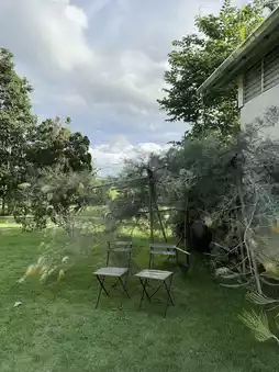 Cafe in an old wooden house surrounded by green trees. The owner is cute, friendly, and chats with you pleasantly. The receptionist, Bobby🐶, is also cute and adorable. The drinks are good and the prices are not expensive. As for the bakery, it is homemade. There are not many to choose from because the owner makes them himself📷 There are many cute photo spots. The lighting is beautiful🏡 You can choose to sit in the indoor area or the outdoor area to chill comfortably. Plus, this place is pet friendly.🐶🚗 It takes about 45 minutes to drive from the city, but if you drive from Mon Muwer, it will take no more than 10 minutes. Location📍 Tambon Huai Kaew, Amphoe Mae On, Chiang Mai Province Time🕘 10.00 - 17.00 (Closed every Thursday)