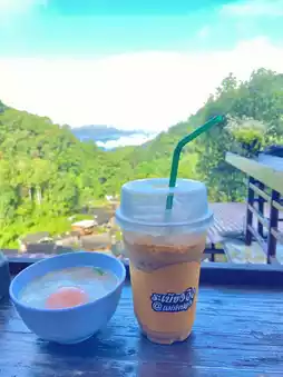 This Mae Kampong accommodation is located at the highest point of Mae Kampong Village, a popular check-in point. It's like you haven't even been here if you don't take a photo here. The highlight is the wooden balcony, which offers a breathtaking bird's-eye view of the village nestled amidst the mountains. It's also a homestay and a cafe, with a great atmosphere and breathtaking views.