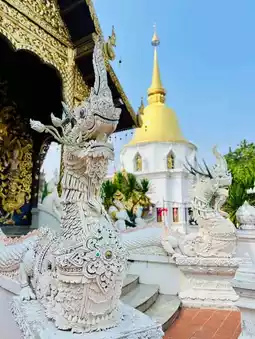 Wat Pa Dara Phirom in Chiang Mai is very beautiful and has a peaceful and serene atmosphere. There is a Buddha tooth relic that you can pay homage to. The temple has many beautiful halls where you can take pictures. It's a great place to visit. The temple has convenient parking, is not crowded, and does not have commercial vendors. There is no need to buy or use any items for worship. The place is clean and well-maintained. It's definitely worth a visit.