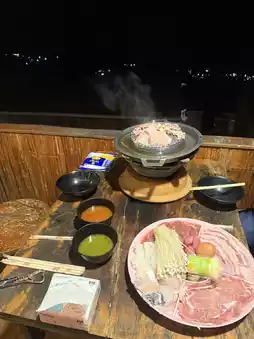 Not including grilled pork, 499 baht per set, can eat for 2 people (must call the chef to inform him what time we will grill) There will be someone to serve at the table in the room