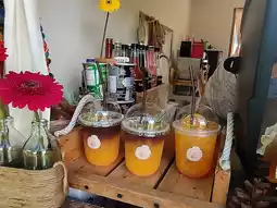 The garden area has many beautiful photo spots. The atmosphere is like being in an orange garden in Korea. There are props and costumes to borrow for free photography. Inside the garden, there is a cafe selling tea and coffee. Bring your card to get a 20% discount on drinks. I recommend the orange juice coffee. It's very delicious.
