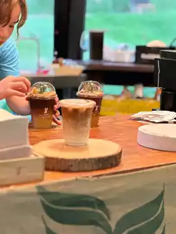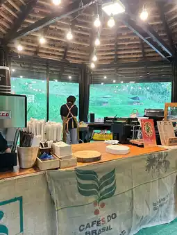 This cafe is very chill, surrounded by valleys, waterfalls, and resorts. If anyone wants to come, I recommend coming during the non-rainy season, I assure you that it is very beautiful. The most popular corner here is a large rock with a waterfall in the background. We saw other people taking pictures during the sun, which is very beautiful.