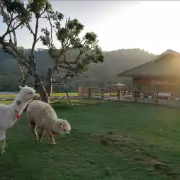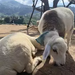 A super cute sheep farm on a hill in Mon Cham, Mae Rim District, Chiang Mai Province. This is the first sheep farm on Mon Cham, covering an area of over 10 rai, where the sheep can roam freely amidst the green fields and stunning mountain views.