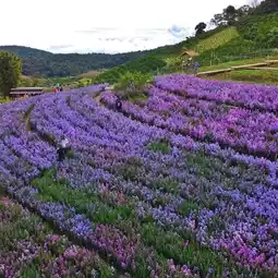When you walk in, you will see a field of purple marguerite flowers. There are also props such as umbrellas and flower baskets π to please selfie lovers. Every angle you take a photo is awesome, whether it's the Tee Doo Tower π‘ that has a rooftop for taking beautiful photos. Or take photos around the flower garden. Selfie lovers will not be disappointed. Because it's awesome in every corner