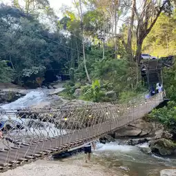 The shop offers a variety of menus, from Thai food such as Khao Soi, Tom Pla, Yam, Som Tam, to desserts and drinks such as fresh coffee, smoothies and soda. The shop has a shady atmosphere. There are beautiful photo spots by the waterfall. Some places you can go swimming. The suspension bridge is a highlight that you shouldn't miss.