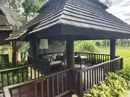 The scenery alone is worth the room rate. The hotel is built on a slope beside a patch of rice fields at the foot of the mountain, with staggered Thai-style buildings, each room having a pavilion. Sitting on the swing chair and gazing into the distance in a daze is pure enjoyment.