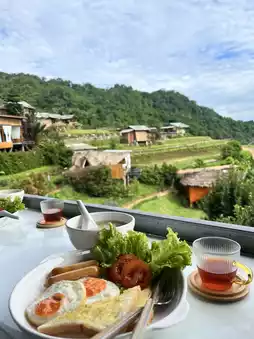 Enjoying breakfast with a million-dollar view like this is a must! The accommodation is not only cozy and surrounded by nature, but also offers a tea set, snacks, and breakfast. Each room comes with one tea set, and breakfast is provided according to the number of guests. We went as a group of four, and they prepared breakfast for all four of us. It’s absolutely heartwarming! Let me tell you, the food is incredibly tasty. You’ve got to try it at least once—it’s simply fabulous!