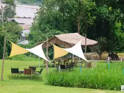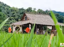 is a Japanese-style cafe and accommodation located in Pong Yang, on the edge of a mountain. The cafe is decorated as a small Japanese hut in the middle of a rice field and valley. The atmosphere is shady, cool, and chill like hanging out at a friend's house. It is suitable for relaxing and taking beautiful photos. There are many menus of drinks and desserts.