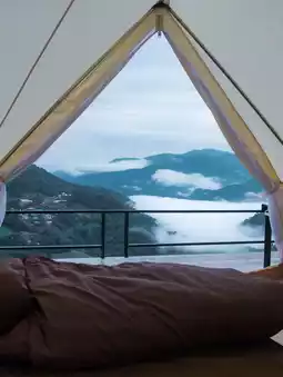 Wake up to a stunning view of layered mountains surrounded by a gentle sea of mist, giving you the feeling of being abroad. 🏞