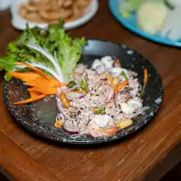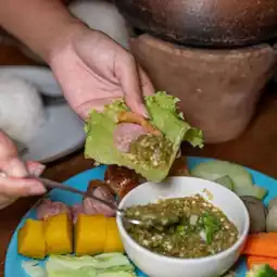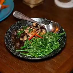The menu offers a wide selection of dishes, including Thai, international, Northern Thai, and even healthy options. The ingredients are top-quality, with some herbs sourced directly from the mountain. The food is delicious. I personally recommend trying the northern Thai food. It's so delicious!