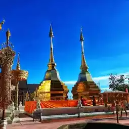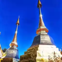 🛕Phra That Doi Tung consists of two golden stupas in a castle-like design, with small round bell-shaped tops on square bases covered with terracotta tiles.