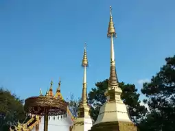 .. There is also a story that in the past, a centipede flag (Tung) that was as long as a thousand wa was planted on the mountaintop. If the tip of the flag fell somewhere, it would be used as the location of the pagoda. This is probably the origin of the name of Phra That Doi Tung.