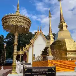 A golden pagoda on a high mountain. You can drive up. The road is quite steep. Park your car at the Naga stairs and walk up. You will get a great atmosphere. The stairs are not very steep and it is not far to the pagoda. Many people come to pay homage with faith.