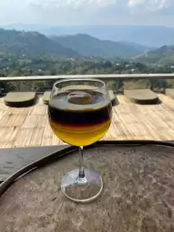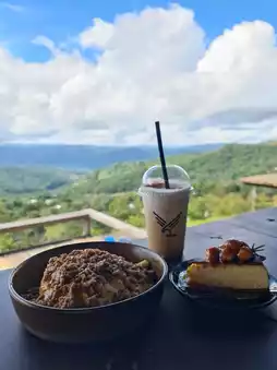 When visiting Doi Chang, you must not miss this famous Chiang Rai cafe. Many people visit with beautiful mountain views and many photo spots. They serve food, drinks, and desserts. Today, I ordered the shop's signature "Yuzu on the Hill", black coffee mixed with yuzu juice. It has a slightly sour taste that contrasts with the strong coffee. It's easy to drink and tastes good. And "Sugar Man", coconut blossom sugar coffee, slightly sweet, and tastes good. #cafe #cafe review #cafe life